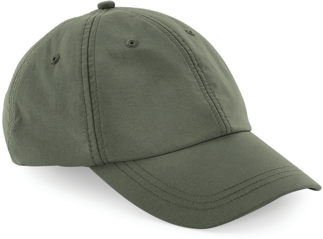 100% Nylon Ripstop. TearAway-label (aftagelig) for nem rebranding. 6 paneler og forbuet visir. Vandtæt og åndbar. 100 % polyester Coolmax® svedbånd. Justerbar rem med clips lukning. Både vandtæt og åndbar. Coolmax® svedstrimmel. Aftagelig etiket, let at genmærke.