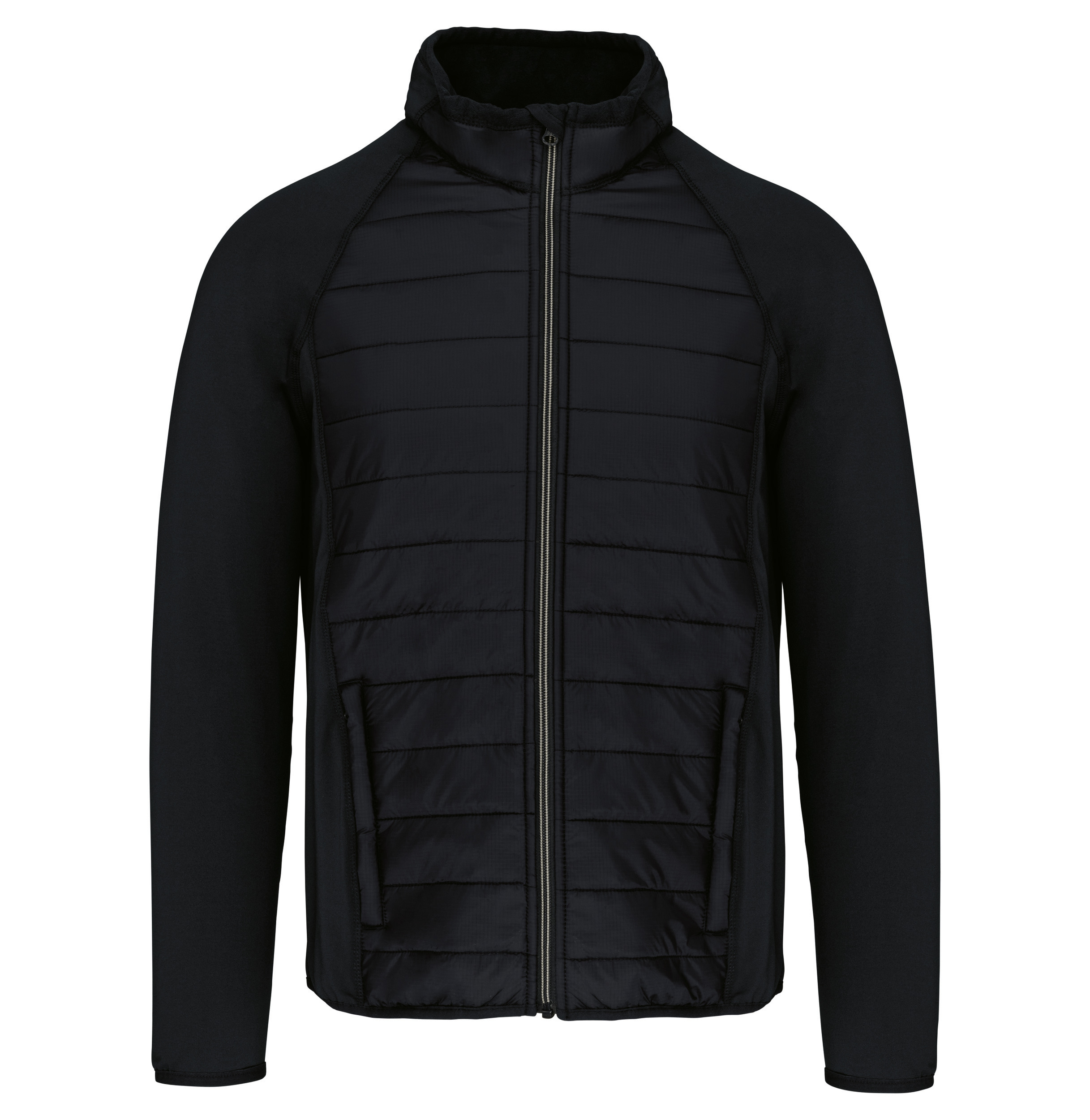 Yderside: Krop 100% ripstop polyamid, ærmer og ryg 90% polyester/10% elastan (Marl Grey/ Sporty Navy: 100% polyester). 100% polyester indvendig polstring. Ultrakomfortabelt materiale med vandafvisende behandling. To lynlåslommer foran. Kontrasteret lynlås lukning. Elastisk skævhed i halsen, manchetterne og bunden af tøjet. Gennemsnitsvægt i str. L: 420 g. Ultra resistent Ripstop stof. Ekstremt behageligt materiale med vandafvisende behandling. Elastisk skævhed i halsen, under ærmerne og bunden af tøjet.