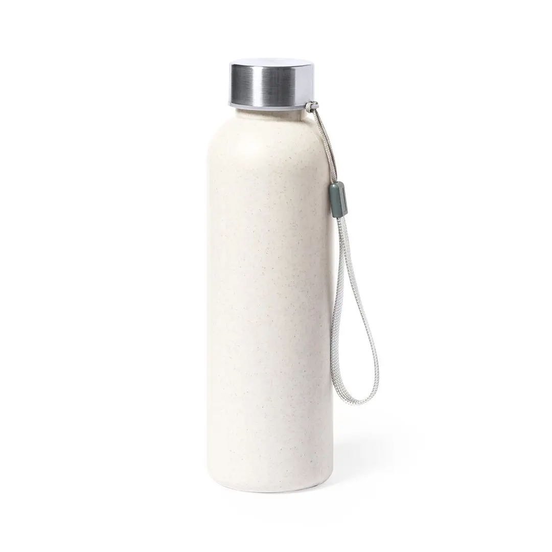 600 ml kornet PE-flaske, BPA-fri. Med skruelåg i rustfrit stål og bærestrop. Food Grade Certificering, der garanterer sikkerhed, når drikken kommer i kontakt med det materiale, der bruges til at fremstille produktet.