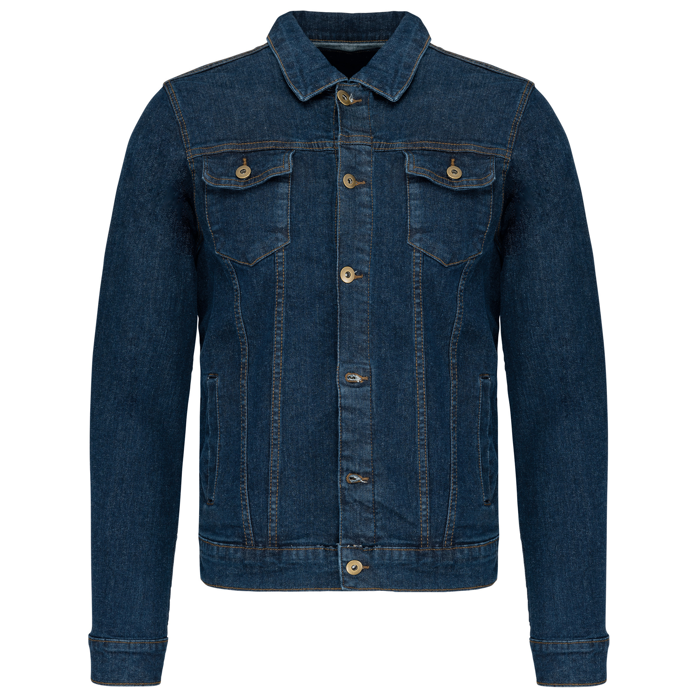 99% bomuld denim / 1% elastan. 11,50 oz. Metal knap lukning. To brystlommer med knapklap og to paspolerede lommer foran. To indvendige lommer. Kontrasterede sømme. Manchetter med knap. Dette produkt har modtaget en særlig behandling, der giver et bevidst ældet look til beklædningen. Den udførte proces resulterer i en farvevariation mellem produkterne, hvilket gør hvert stykke unikt. Den tidløse denimjakke. Let falmet finish inspireret af vintage denim stilarter. IKKE ETIKET.