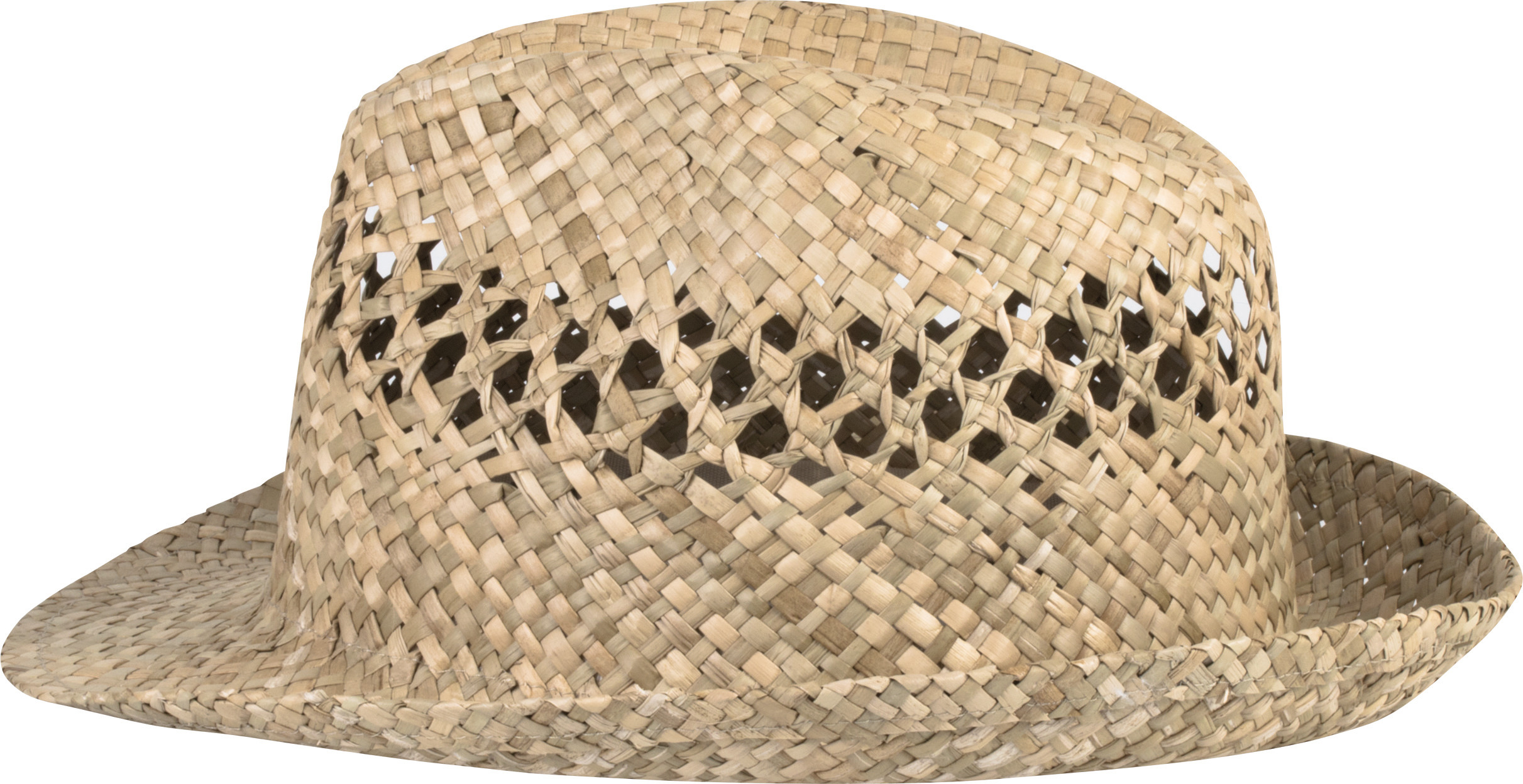 Flettet og ventileret vegetabilsk fiberhat. Sælges uden tape. KP609-remmen kan tilpasses ved at bestille den separat i den tilsvarende størrelse. Flettet og ventileret naturlig vegetabilsk fiber, meget behagelig at have på og som tillader luft at passere igennem for at undgå varmefornemmelsen i hovedbunden. Panama stil med et elegant og tidløst snit. Sælges uden tape. Tilpasset tape: KP609.