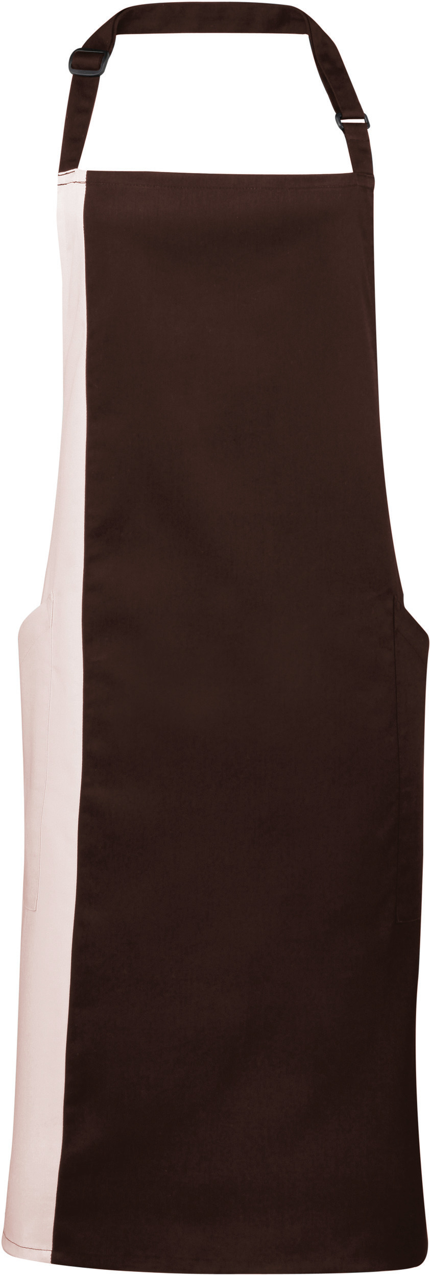 65% polyester/35% bomuldstwill. Tofarvet forklæde. 2 90 cm lange slips af samme materiale. Længde: 86 cm. Bredde: 72 cm. Justerbart spænde To sidelommer foran med skrå åbning. Udskrivningsområde på størrelse med en A4-side lodret i midten af tøjet. Industrivask ved 85°C. Husvask ved 60°C. Twill stof: tilpasningsdygtig, modstandsdygtig og nem at pleje. 2 praktiske sidelommer i den ene side. Justerbar snøre i nakken.