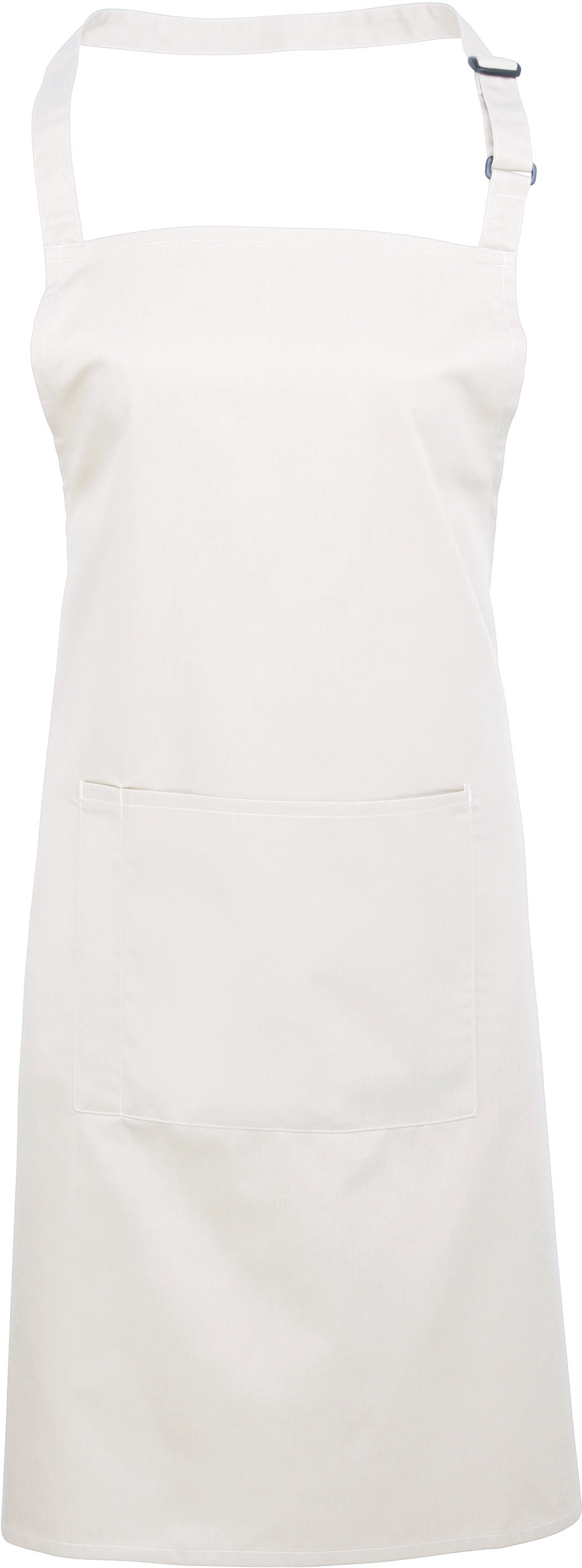65% polyester/35% bomuldstwill. Bind bånd af samme materiale som forklædet. Midterlomme med separat pennelomme. Justerbart spænde Længde: 86 cm. Bredde: 72 cm. Bindebånd størrelse: 90 cm lang. Industrivask ved 85°C. Husvask ved 60°C. Twillvævning: fleksibel og solid. Funktionel midterlomme. Justerbar snøre i nakken.