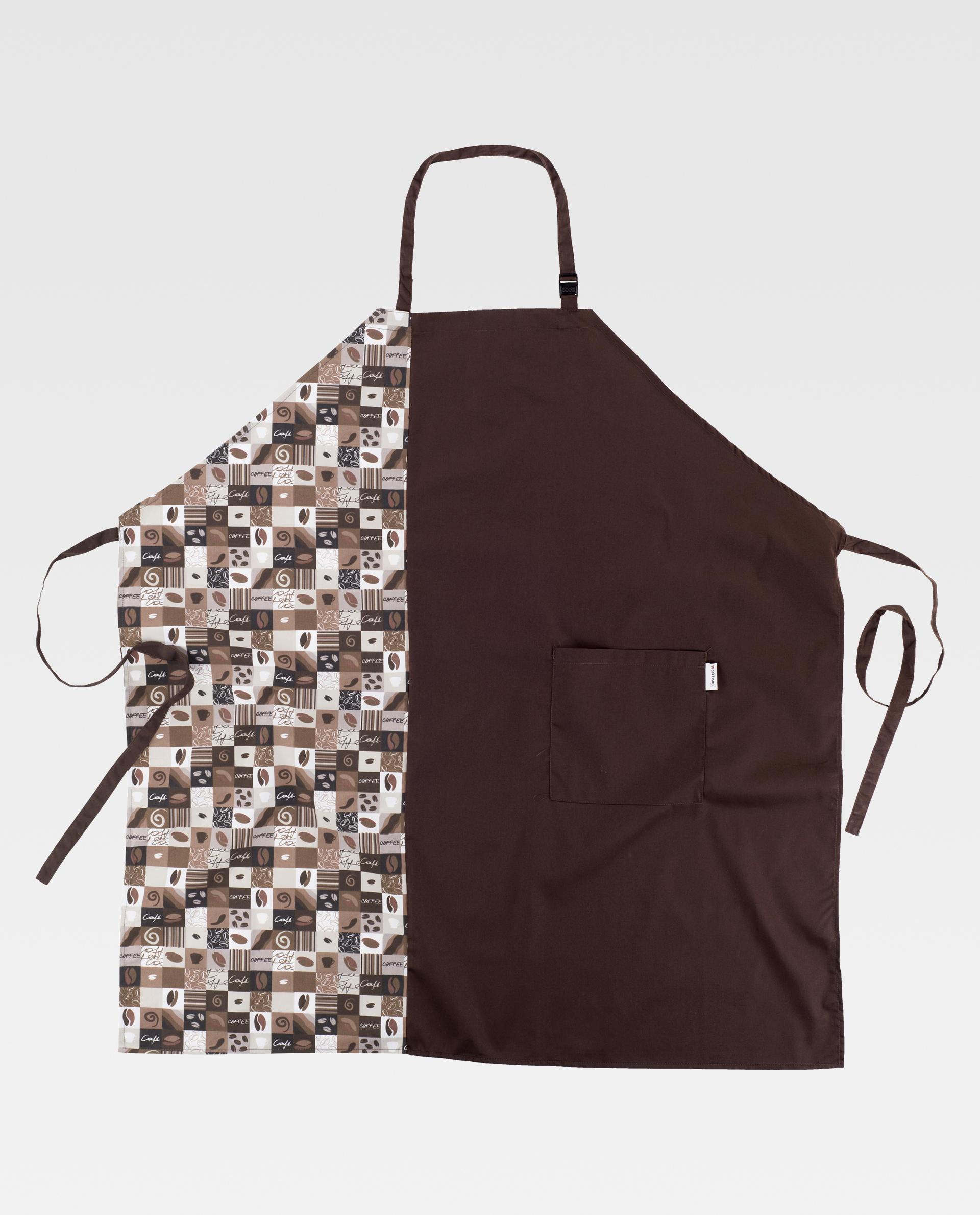 Forklæde kombineret med hagesmæk. En sidetaske. Hals med justerbart spænde. Stropper til justering i taljen. Smudsafvisende finish. 90 x 95 cm. Forklæde kombineret med hagesmæk. En sidetaske. Hals med justerbart spænde. Stropper til justering i taljen. Smudsafvisende finish. 90X95 cm.