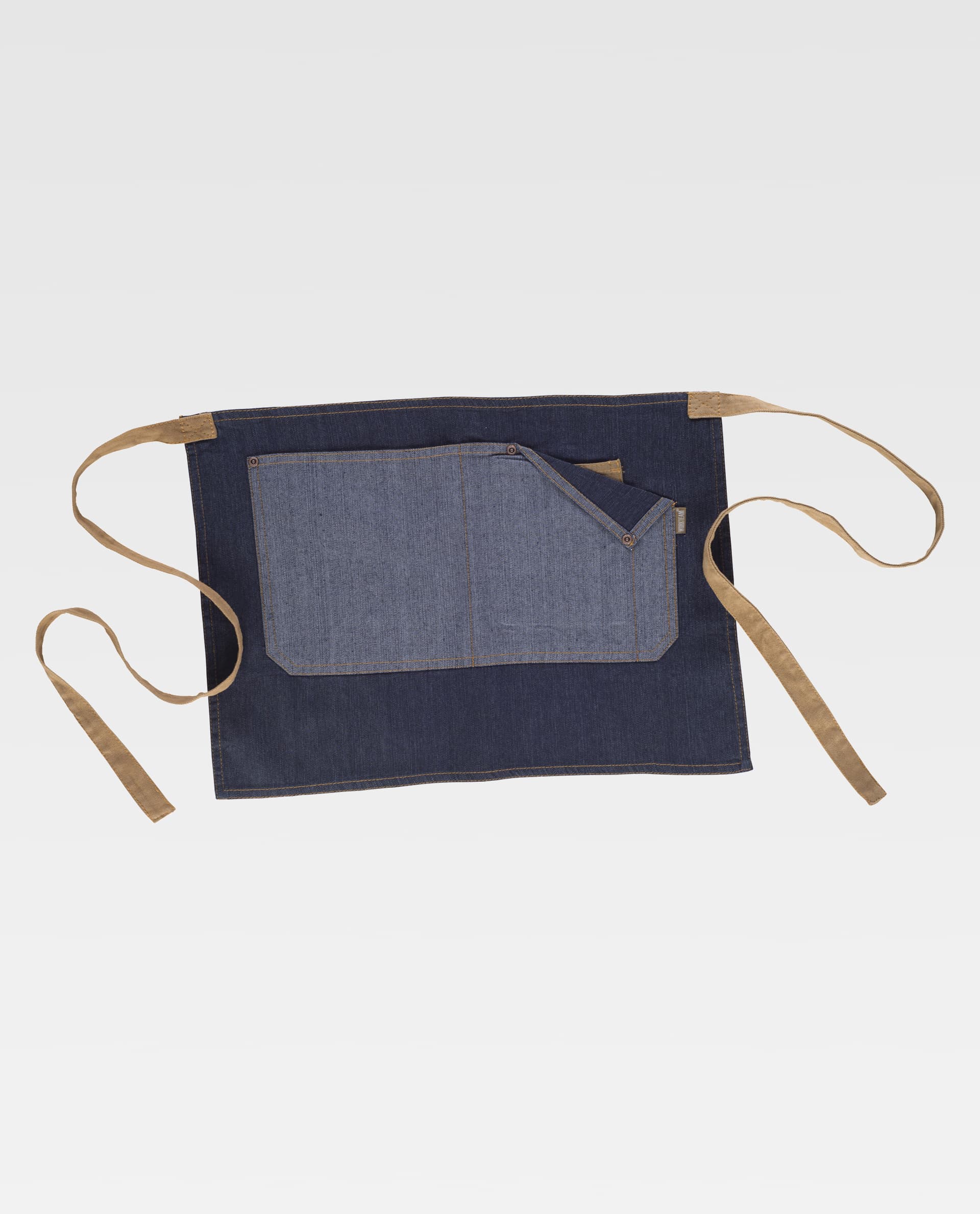 Kort fransk forklæde i denimstof kombineret med kanvas. En centralt opdelt asymmetrisk taske med en indvendig urlomme. Kanvasstofbånd til justering i taljen. Moderne design med kobbernitter. Kort fransk forklæde i denimstof kombineret med kanvas. En centralt opdelt asymmetrisk taske med en indvendig urlomme. Kanvasstofbånd til justering i taljen. Moderne design med kobbernitter.