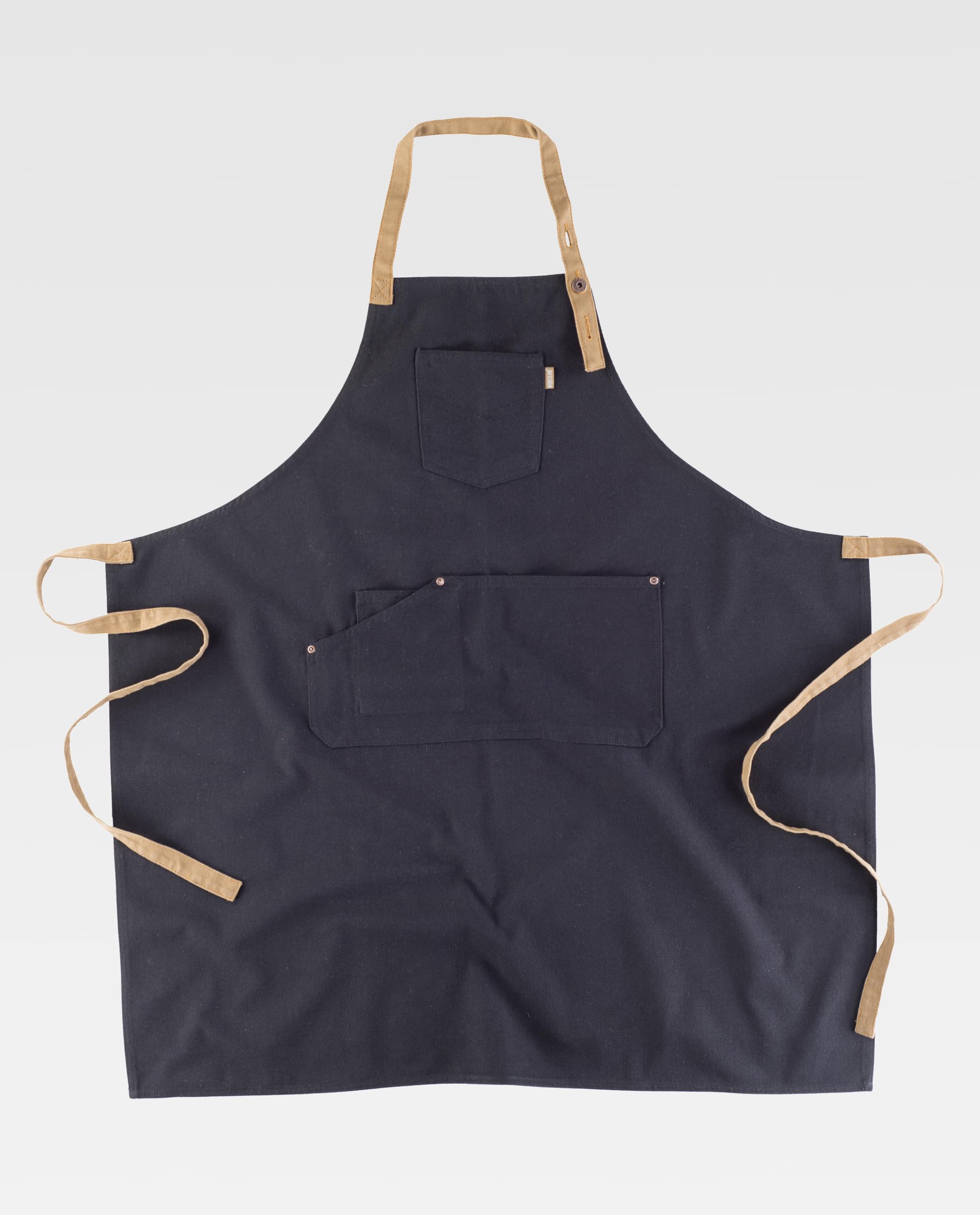 Forklæde med hagesmæk i kanvasstof. En brysttaske med smarte sømme og en asymmetrisk central taske i rum med en indvendig urlomme. Justerbar rem med metalknapper i halsen og bånd til justering af taljen. Moderne design med kobbernitter. Forklæde med hagesmæk i kanvasstof. En brysttaske med smarte sømme og en asymmetrisk central taske i rum med en indvendig urlomme. Justerbar rem med metalknapper i halsen og bånd til justering af taljen. Moderne design med kobbernitter.