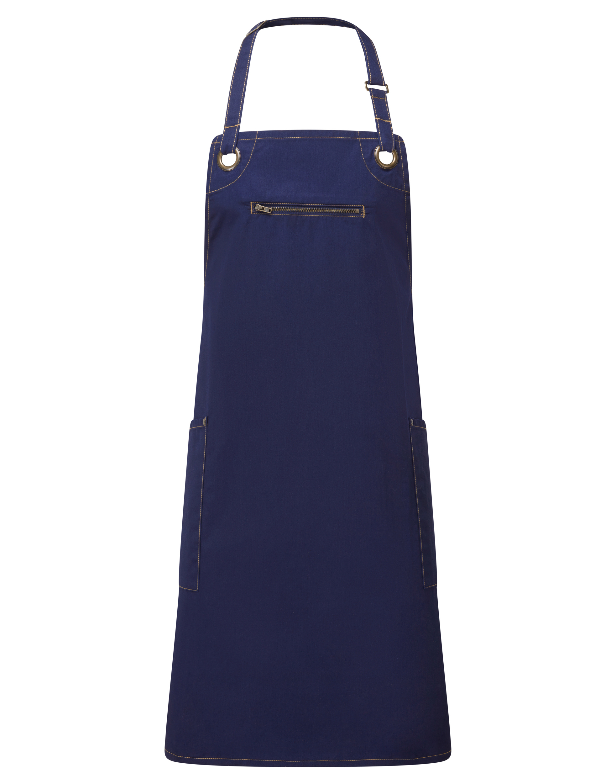 65% polyester/35% bomuld. Genanvendt polyester fra post-consumer plastik og bæredygtigt dyrket bomuld. Øjner og nitter. Syninger i kontrastfarve. Sidelommer og central lynlåslomme. Justerbart antikt messingspænde på nakkestroppen. Justerbare spænder for en perfekt pasform. Central lomme med lynlås. Kvalitets finish.