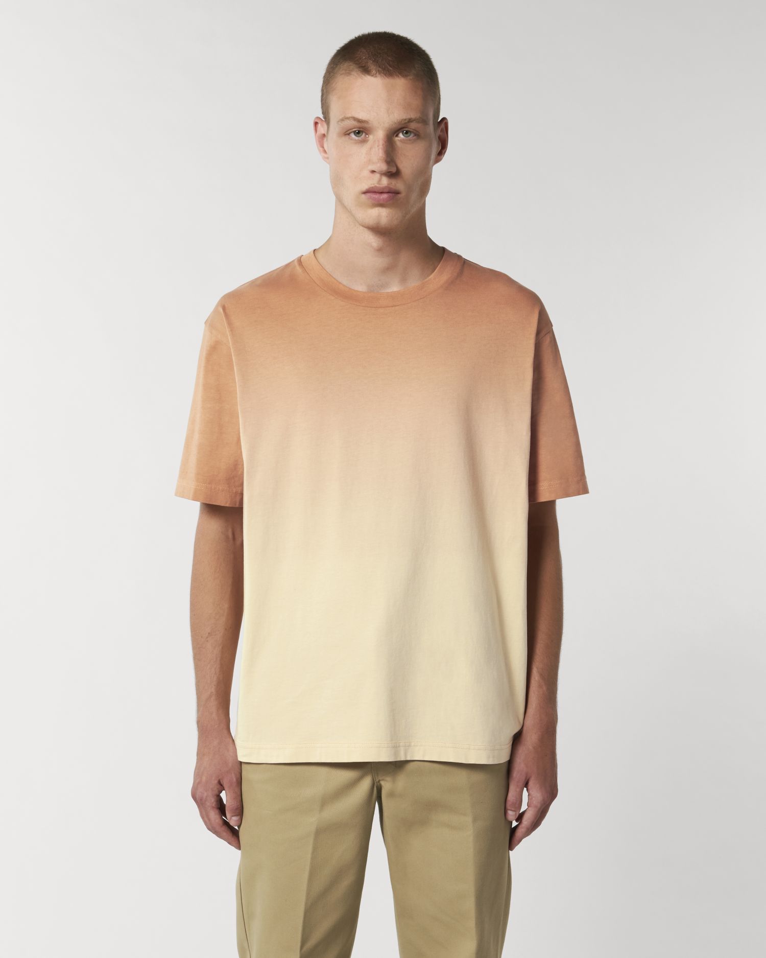 Den løse unisex t-shirt med dip dye print. Løs pasform, Rund hals, Kortærmet, Single jersey strik. Monteret ærme 1x1 ribkrave Hovedstofs indre skævhed på hals Bred dobbeltsøm på manchetter og søm Produkt med dip dye print, udseendet af hver beklædningsgenstand kan variere, den kan falme, følg omhyggeligt plejeetiketten_ Læs 000D printet