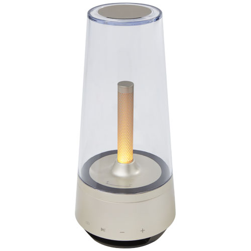 Kraftfuld Bluetooth®-højttaler med 5 W udgang og et lækkert design med indbygget lysdæmper for at give en romantisk atmosfære. Den kan også bruges separat som lyskilde, hvor lysstyrken nemt kan styres ved at dreje kroppen. Det indbyggede 1000 mAh genopladelige batteri sikrer 2,5-5 timers afspilningstid ved maksimal lydstyrke (afhænger af, om dæmperen er til eller fra). Bluetooth® 5.1 med op til 10 meters rækkevidde sikrer stabil forbindelse og lydkvalitet. Leveres i en æske af kraftpapir med et farverigt klistermærke.