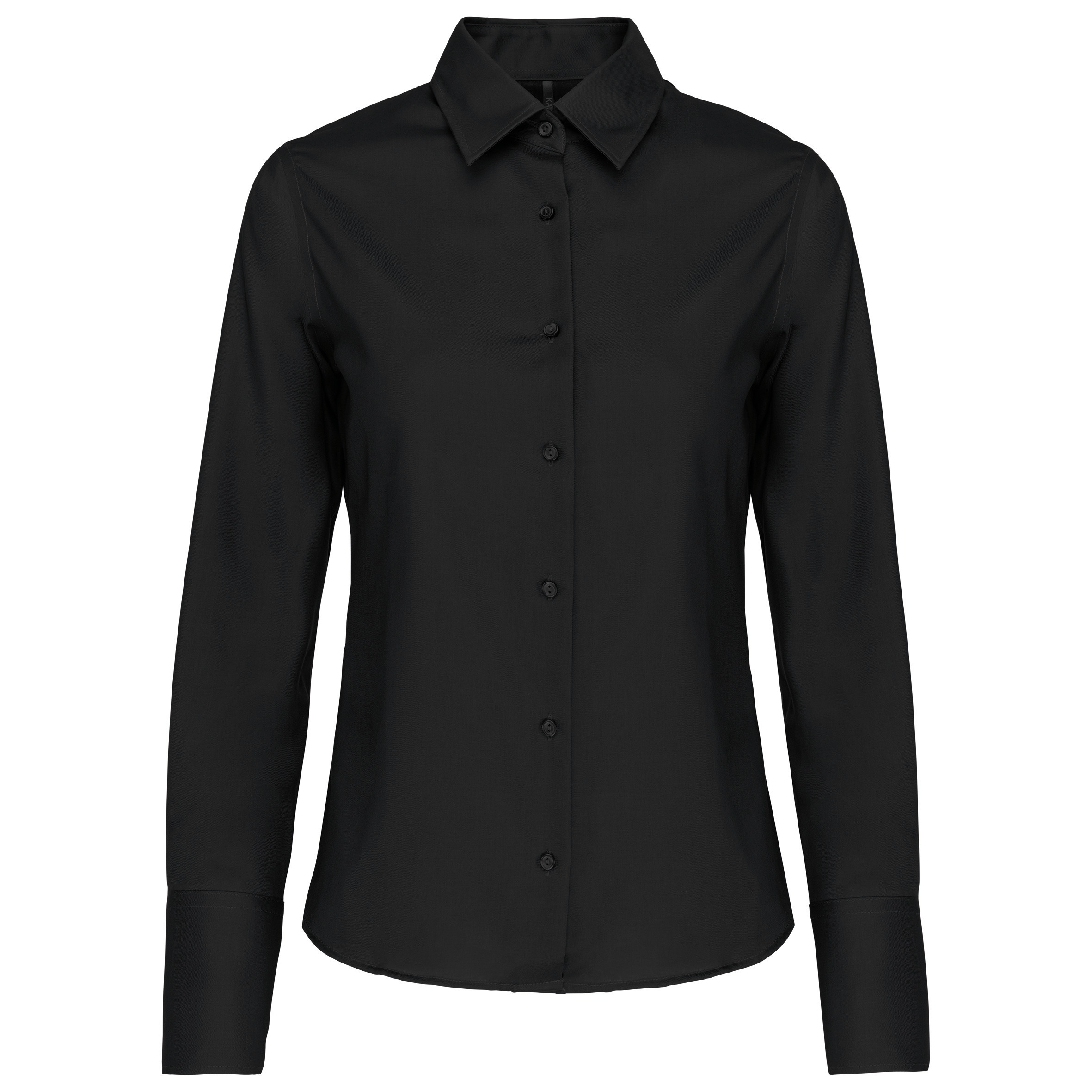 100% bomuld mikrotwill. Langærmet skjorte til kvinder. Topmoderne stof: ingen strygning påkrævet. Krave med knap. Matchende knapper. Brede 3-knaps manchetter med cappuccino strimmel. Afsluttet med rullesømme. 1 ekstra knap. Rund formet søm. Ren og raffineret stil. Strygefri, letplejet stof. Mikrotwill bomuldskonstruktion: holdbarhed og komfort.