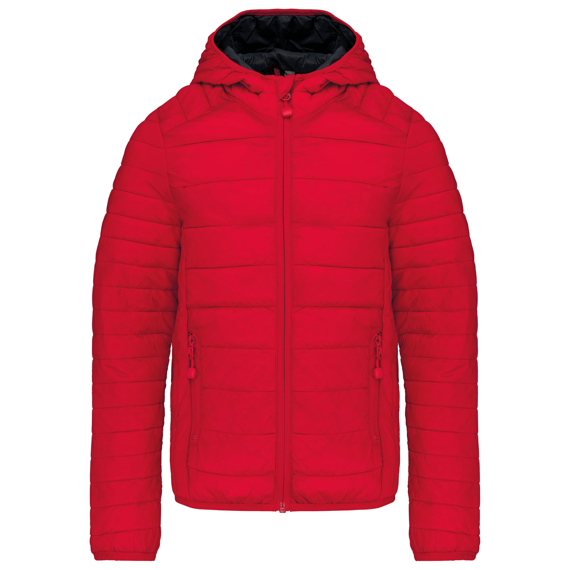 Indvendig polyester foring. Varm og ultralet. Den kan foldes sammen til opbevaring i sin egen taske. To lynlåslommer foran. Kontrasterende for og hætte (undtagen farven Navy). STANDARD 100 certifikat af OEKO-TEX® nr. CQ 1007/8, IFTH. Praktisk, varm og ultralet. Modstandsdygtigt, strækbart og letplejet materiale. Den kan komprimeres inde i sin egen taske.