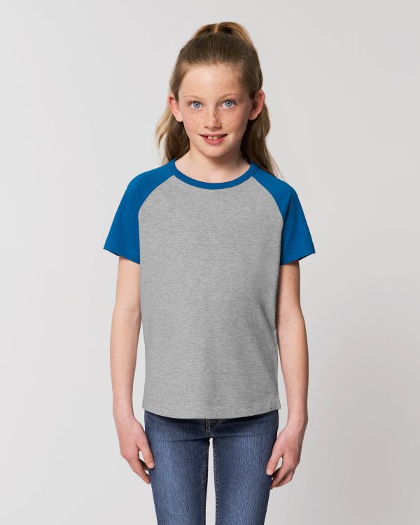 Den kortærmede kontrasterende t-shirt til drenge. Regular fit, Rund hals, Kortærmet, Single jersey strik. Raglanærmer Kontrasterende 1x1 ribkrave Kontrasterende ærmer Dobbeltsyning på ærmer og søm Let afrundet søm