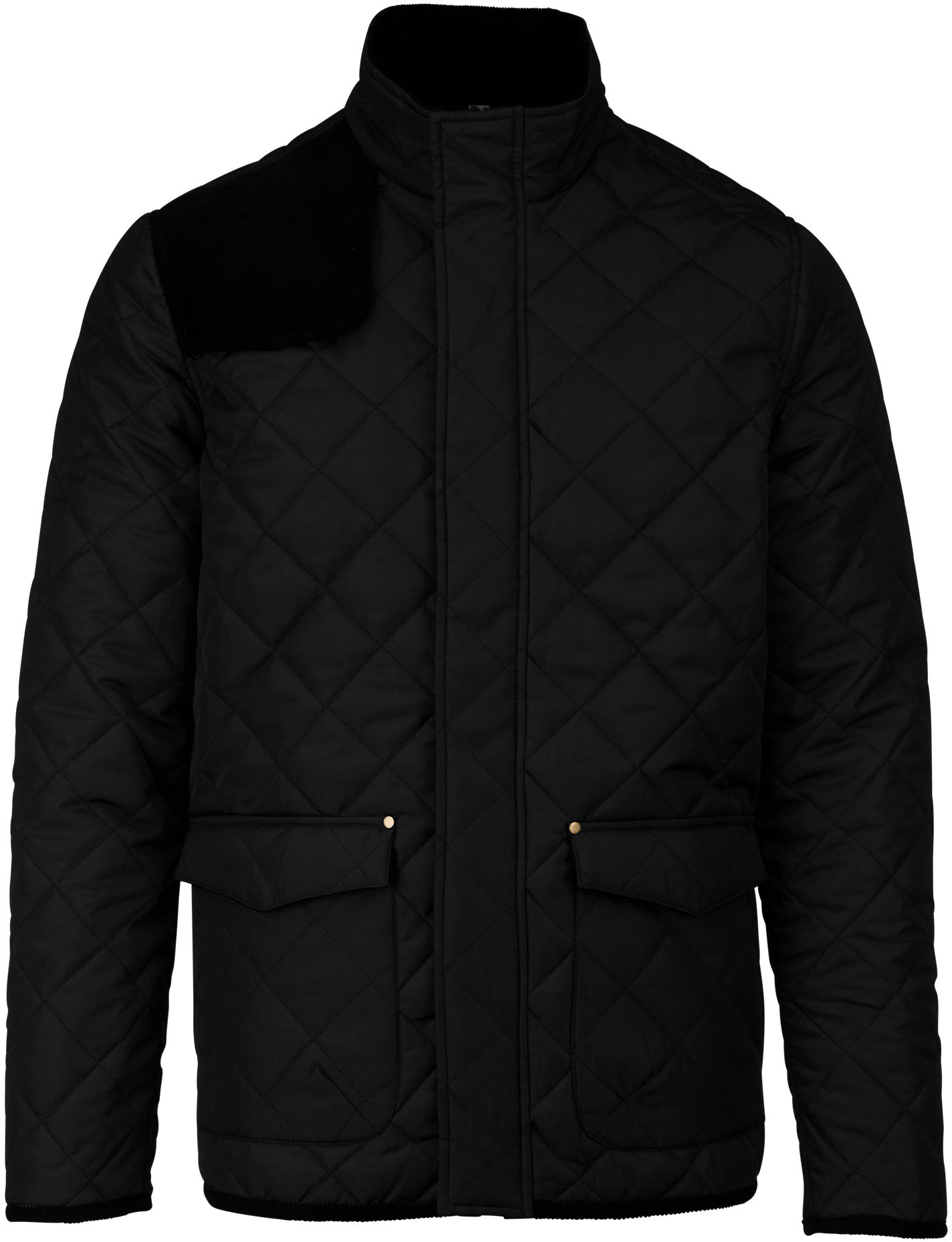 Skal: 100% polyester ponge. Interiør: 100% polyester taft. Lynlåslukning skjult af en stolpe med krog-og-øje-lukninger. To dobbeltlommer foran med trykknapper på klappen. En inderlomme. Skulderpres-åg. Fløjlsfinish på manchetter, søm, albuelapper, indvendig krave og indvendig lommeklap. To åbninger nederst bagpå med trykknapper. Krog-og-øje lukning ved manchetterne. STANDARD 100 certifikat af OEKO-TEX® nr. CQ 1007/8, IFTH. Trendy polstret jakke med en urban og elegant stil. Ribbet fløjl finish. Blødt og behageligt materiale at have på.