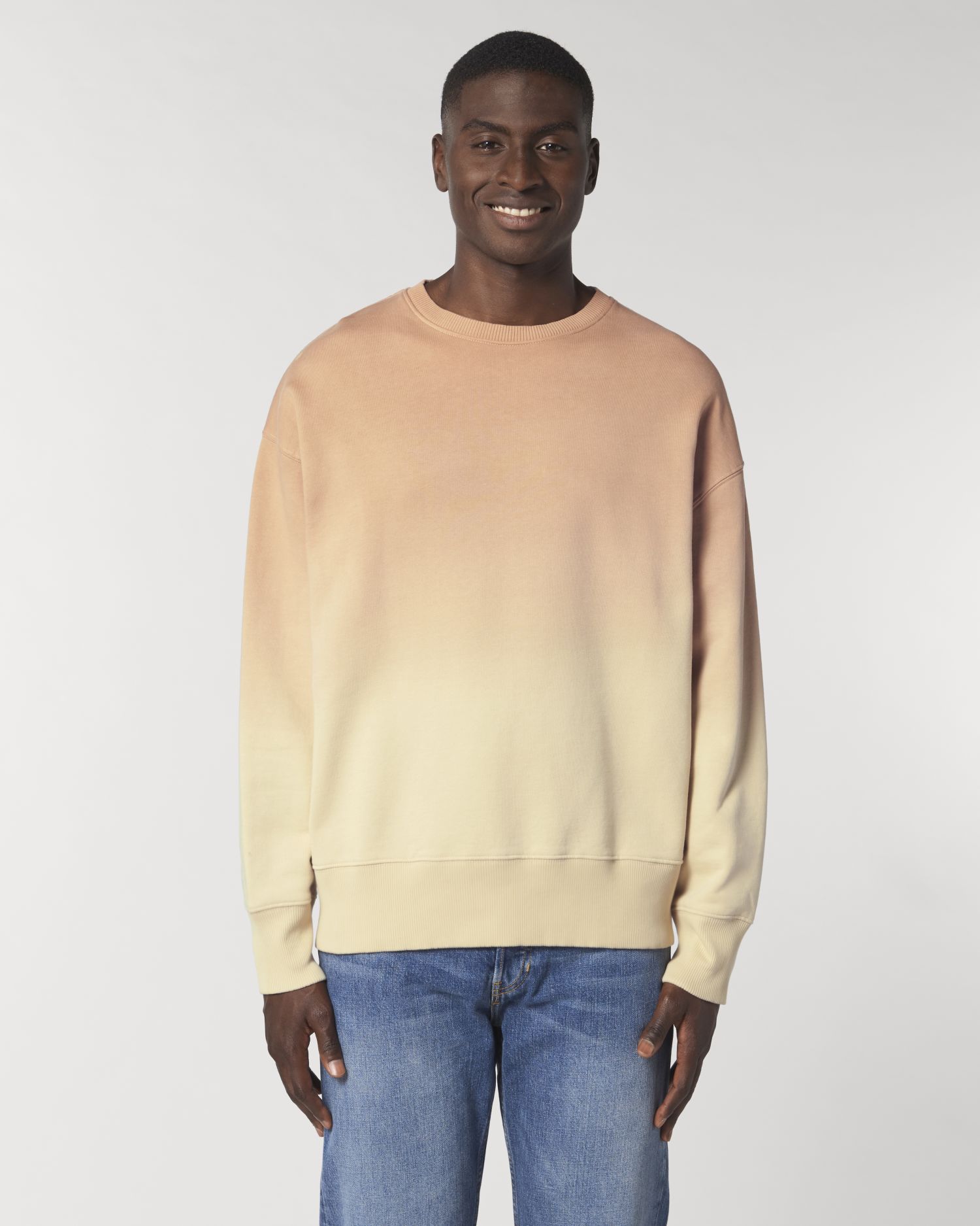 Den løse unisex sweatshirt med rund hals og dip dye print. Løst snit, rund hals, lange ærmer, børstet fleece. Monteret ærme 2x2 rib ved halsudskæring, manchetter og forneden Indre sildebensskævhed på hals Indre halvmåne i hovedstof Enkeltsøm på hals Dobbeltsøm på ærmegab_ med ærmegab, kan følg ærmegab, ærmer, kan 00, følg. instruktioner om plejelabel Læs venligst udskrivningsanbefalingerne omhyggeligt