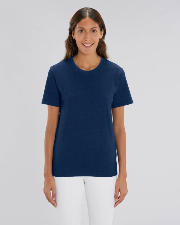 Unisex denim t-shirt. Regular fit, Rund hals, Kortærmet, Single jersey strik. Monteret ærme 1x1 ribkrave Hovedstofs indre skævhed ved krave Bred dobbeltsøm på manchetter og søm Distressed effekt på alle sømme Beklædningsgenstand farvet med indigo, udseendet af hver beklædningsgenstand kan tages af0, følg med omhyggeligt 0 etiketten0. trykanbefalingerne