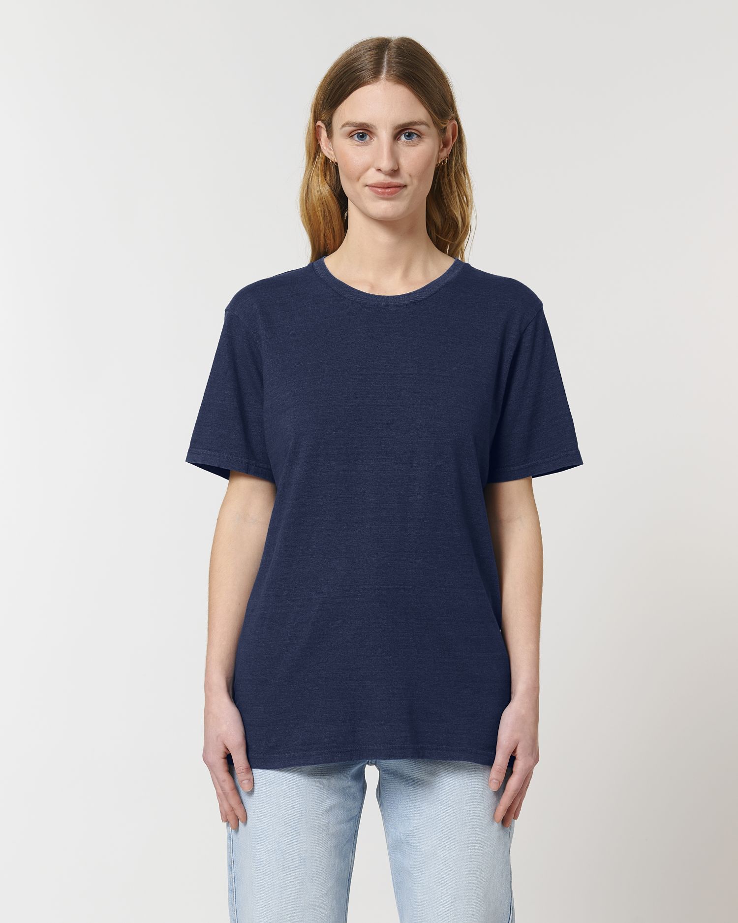 Unisex denim t-shirt. Regular fit, Rund hals, Kortærmet, Single jersey strik. Monteret ærme