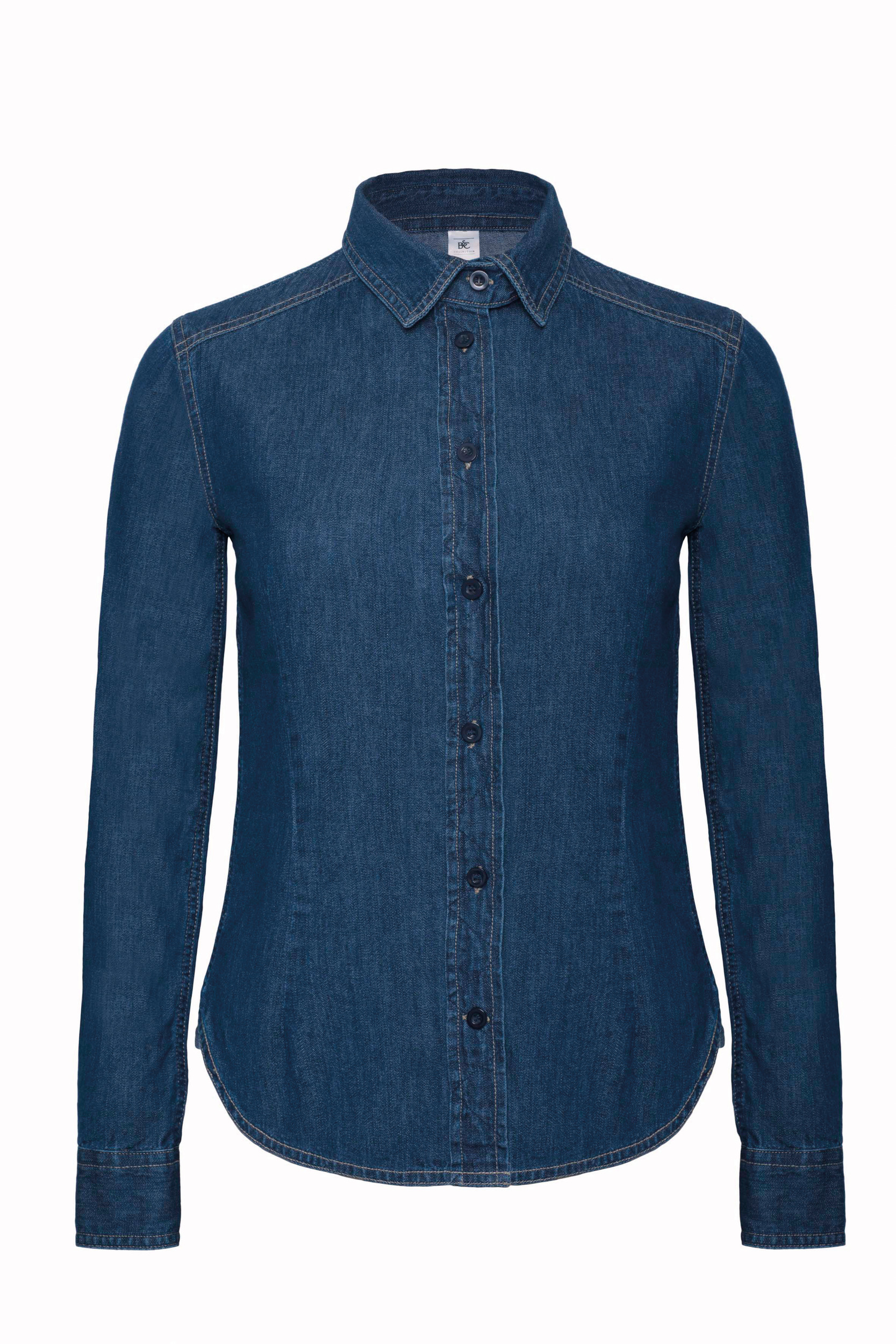 100% bomuld denim, vasket finish. Lang ærmet skjorte. Slim pasform. Lange ærmer og manchetter med to knapper. Dart på brystet og ryggen for en feminin silhuet. Feminin krave med ekstra klap på den første knap og en smal strimmel i omvendt denim. 2-delt halsudskæring for et vintage look. Matchende knapper. Matchende knaplukning i individuel zigzagsøm. Dekorativ knap i gammel messing på venstre ærmerem. Dekorativ bærestykke med dobbeltsyning foran på skulderen. Omvendt denim i nederste kant. Afrundet nederste kant. STANDARD 100 certifikat af OEKO-TEX®N° 1501003X, Centexbel. Perfekt glat ensartet overflade. Halvsynlig blodplade. Kvindelig silhuet.