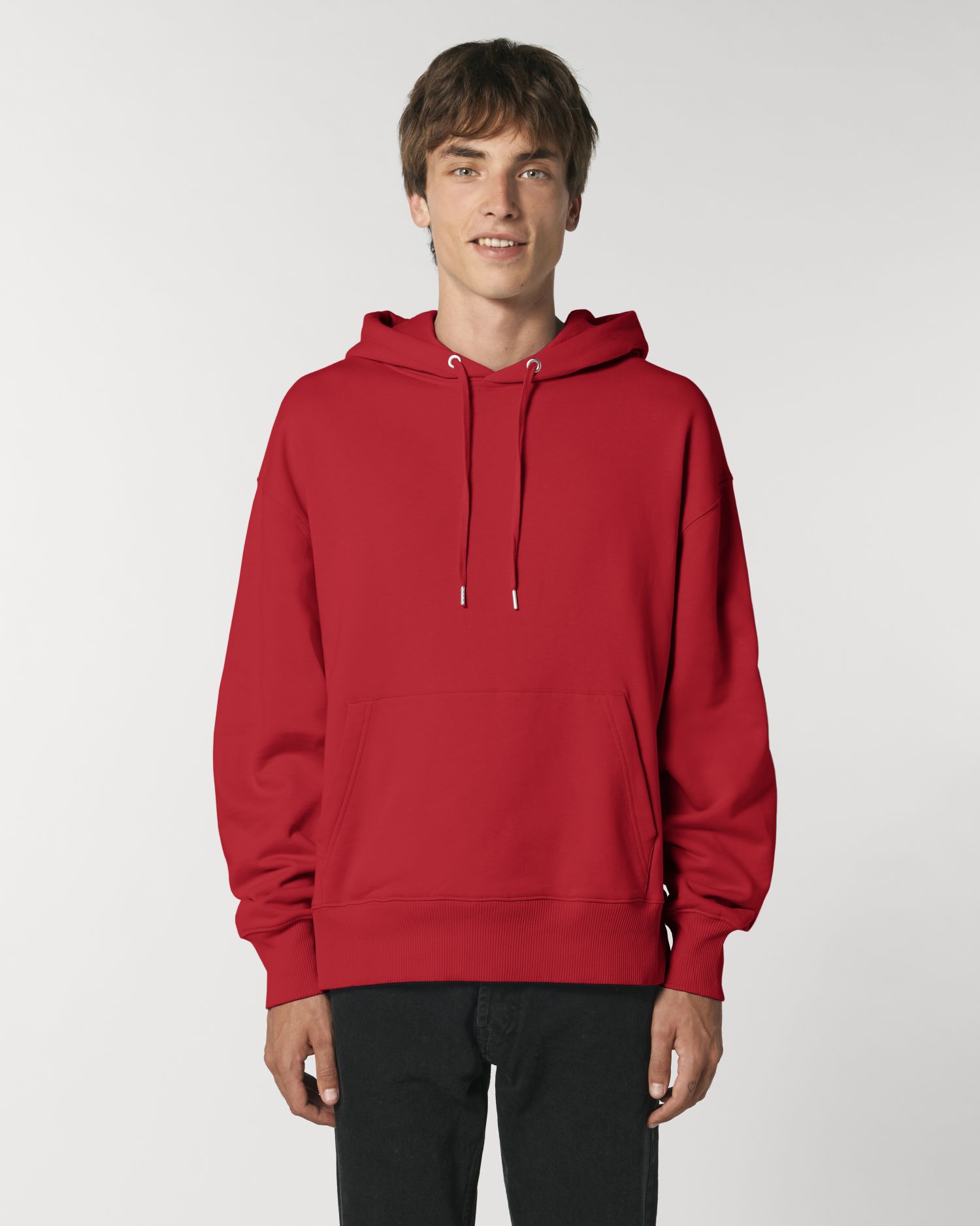 Den unisex løse hættetrøje. Løst snit, rund hals med hætte, lange ærmer, børstet fleece. Lukkede ærmer