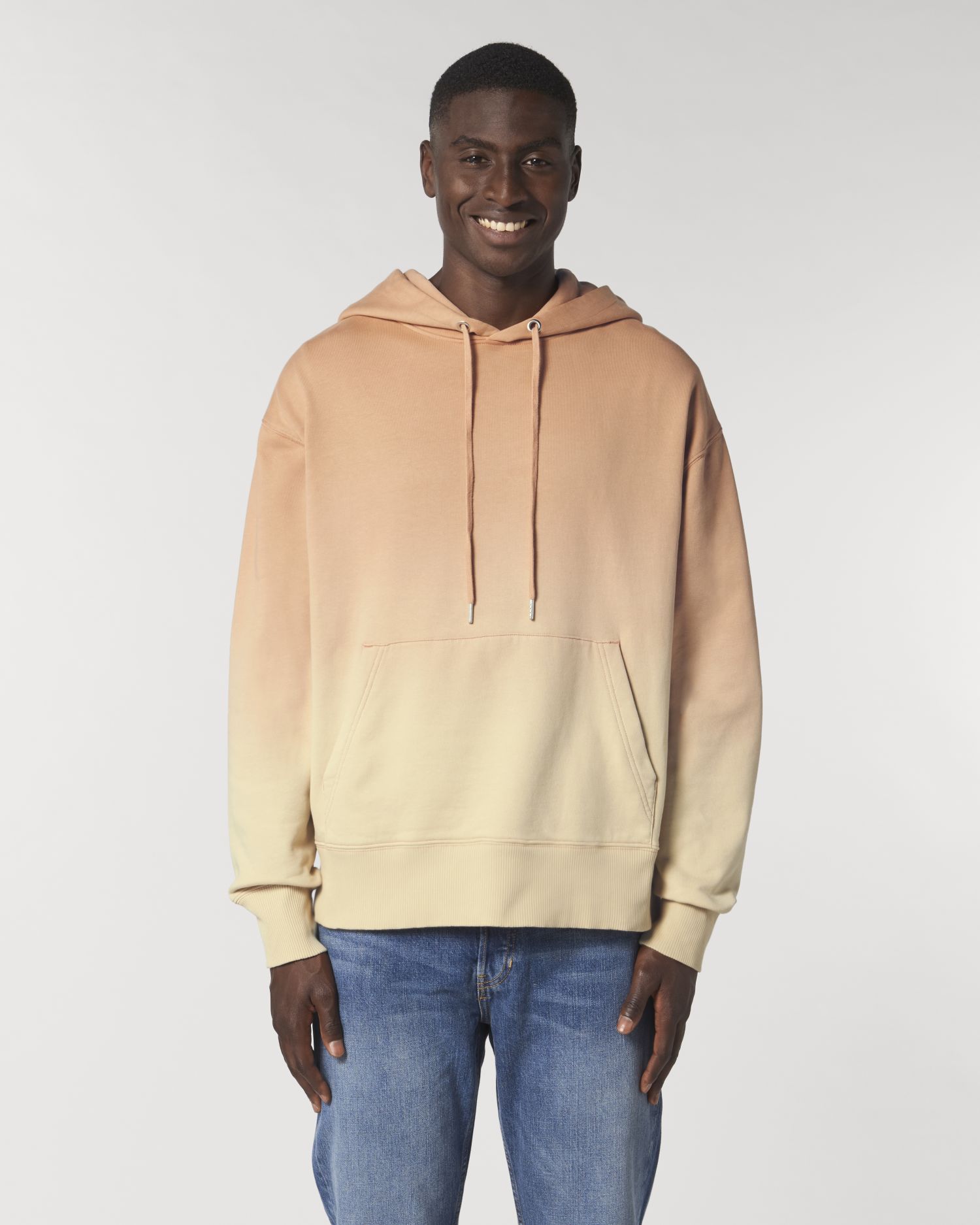 Den løse unisex hættetrøje med dip dye print. Løst snit, rund hals med hætte, lange ærmer, børstet fleece. Lukket ærmer Hætte foret i Main Fabric Flad Drawstring i samme tone færdig med metal-finish TIPS_X000D_ Metal Eyelets Inner Sildben Bias på nakke Indvendig halvmåne i Main Fabric Single Stitch på Collar Double Stitch på ARMAKE OG LOW_X000D_ KANGAROO POCKET_X000D_ Produkt med dip dye print, udseendet af hver beklædningsgenstand kan variere, følg plejeetiketten Læs omhyggeligt udskriftsanbefalingerne
