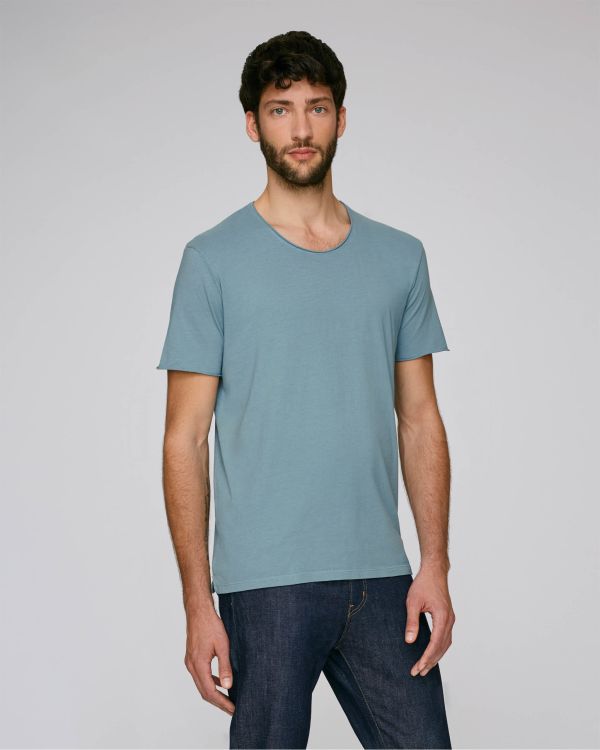 Den farvede skjorte til ham. Figursyet snit, rund hals, kortærmet, enkelt jersey strik. Monteret ærme