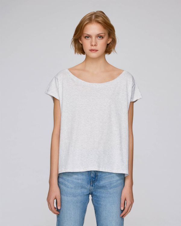 Crop toppen til hende. Oversize, bred rund hals, korte ærmer, enkelt jersey strik. Kimonoærmer