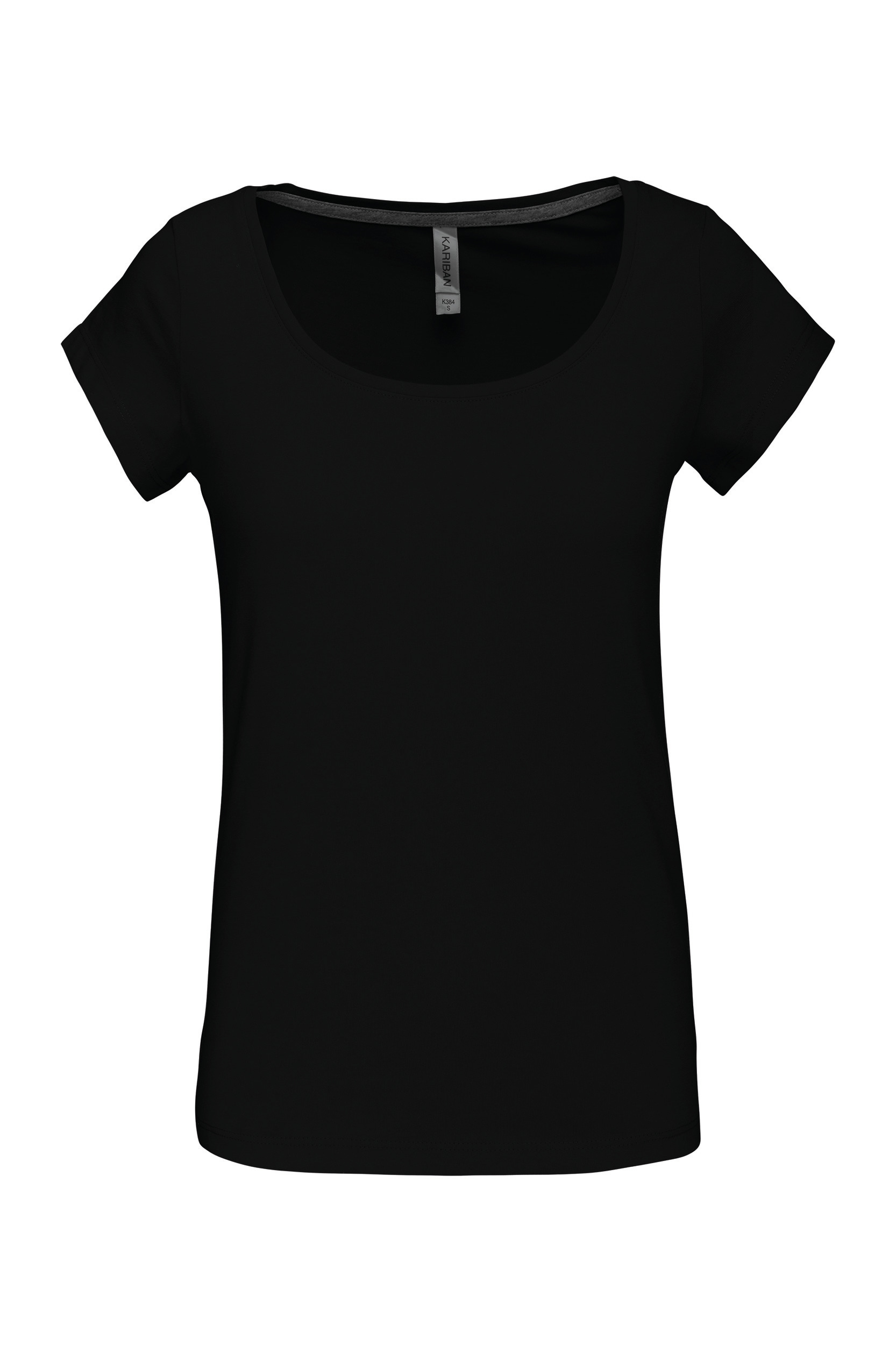 100% enzymvasket kæmmet bomuld. udtalt halsudskæring Slim pasform. Kontrasterende tape på halsen (hvid farve for hvid og Oxford grå farve for de andre farver). STANDARD 100 certifikat af OEKO-TEX® nr. CQ1007/7, IFTH. Feminin t-shirt med enzymatisk behandling; en grundlæggende til professionel brug. Blødt berøring og fremragende printbarhed. Figursyet snit og bred halsudskæring.