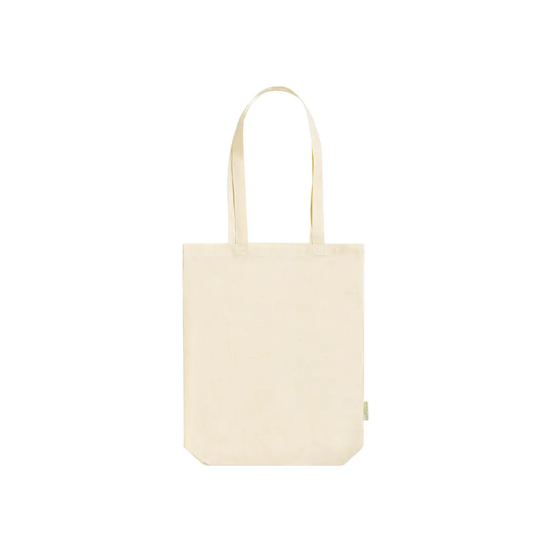 Nature line taske i 140g/m2 økologisk bomuld. Lange håndtag i økologisk bomuld, 70 cm og forstærket. Syet finish og modstand på op til 8 kg i vægt, med karakteristisk økologisk bomuld på etiketten.