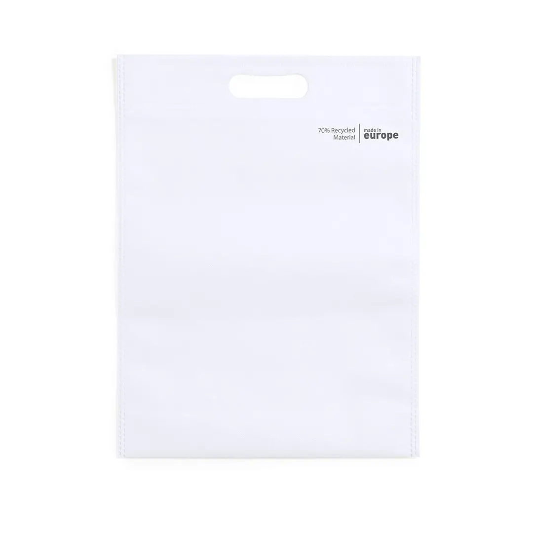 Nature line taske, lavet af 70g/m2 genanvendt non-woven. Europæisk fremstillet, med varmeforseglet finish, bælg i bunden, forstærket udstanset håndtag og eco/made in badge på tasken.