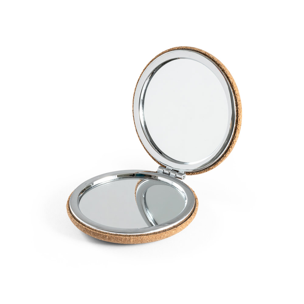 Dobbelt korkspejl med magnetlukning. Leveres i naturpapiretui. ø73x20mm
